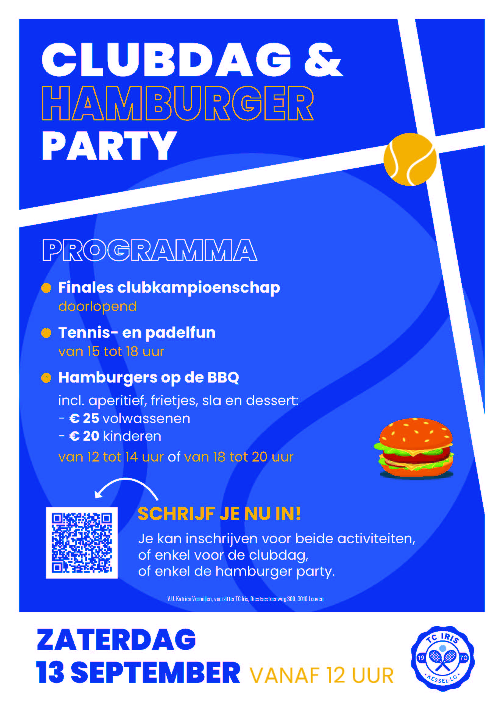 Zaterdag 13 sept : tennis, padel & hamburgers, wees erbij!
